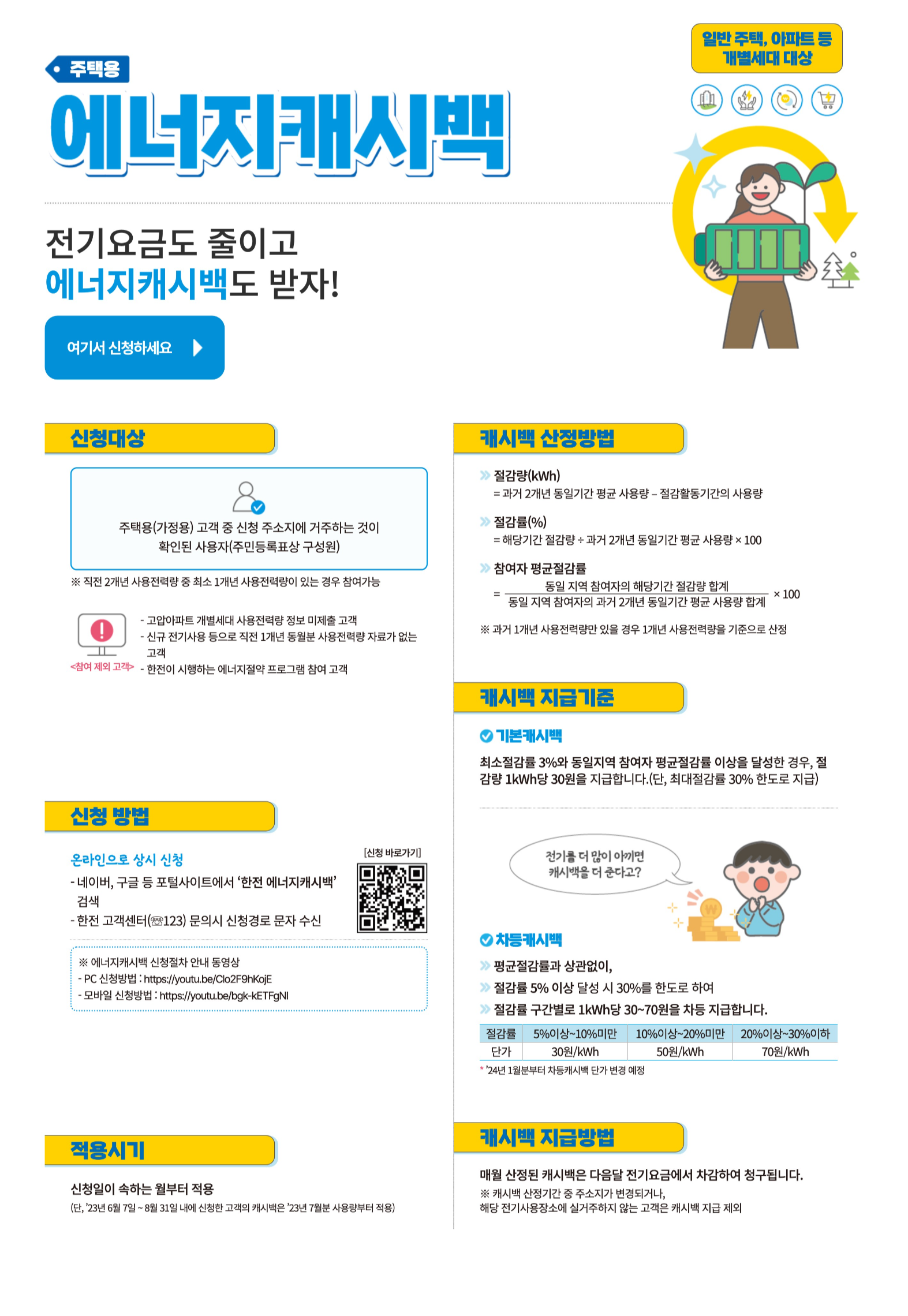 - 절감량 1kWh당 1kWh당 30원의 기존캐시백에 더해 절감률에 따라 1 kWh당 30~70원 추가 지급